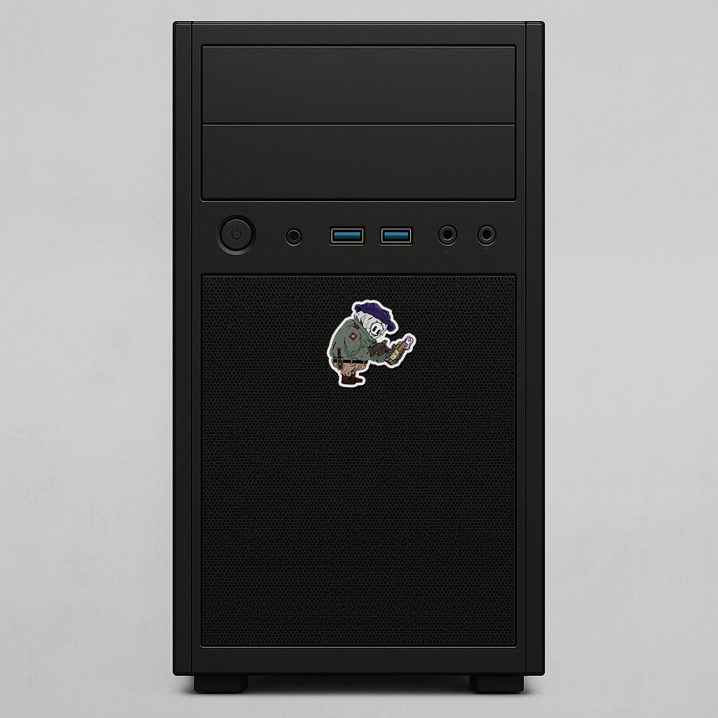 Our stickers are made from durable vinyl with a matte finish. They're water-resistant, scratch-resistant, and weatherproof, so they hold up whether you stick them on your laptop, water bottle, console, or PC case.